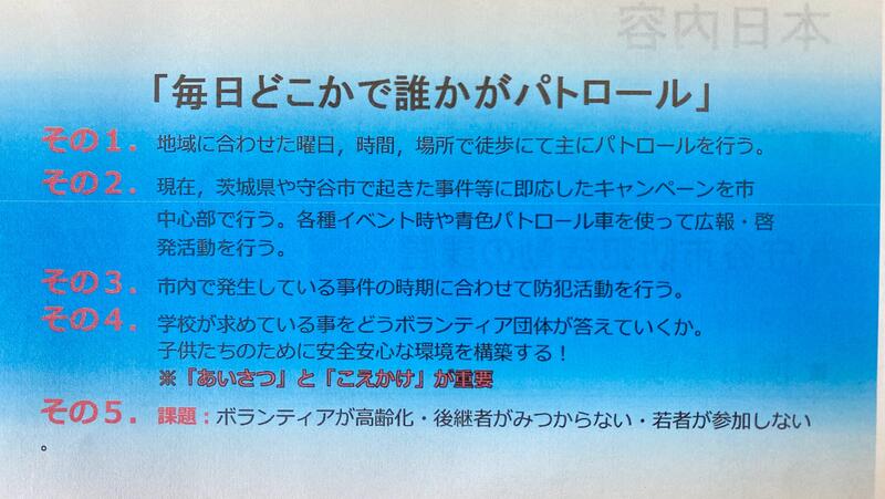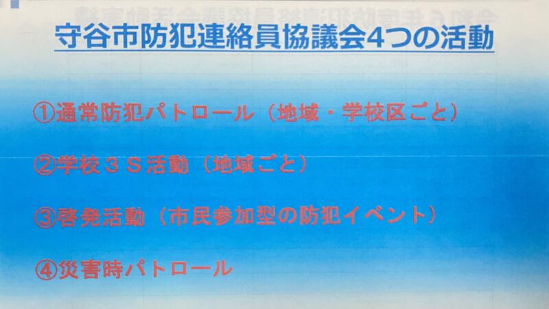 守谷市の防犯活動・取り組みについてお話しをしていただきました。