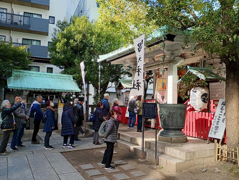 最初に参拝予定の「小網神社(福禄寿)」は神社に繋がる歩道に長い行列ができていて、これでは数時間待たないと入れないと考え、全体での参拝は諦めました(汗)