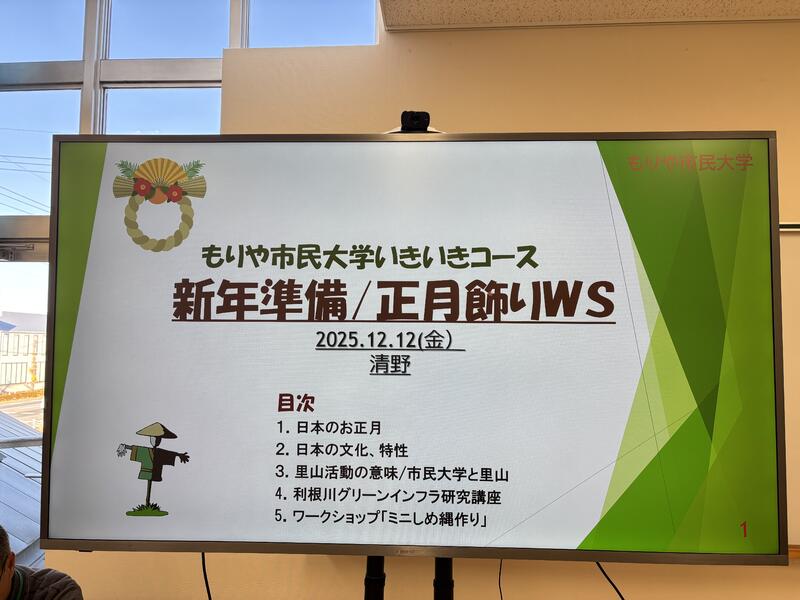 もりやいきいきコースの第7回目は、「新年準備と里山の正月飾りワークショップ」