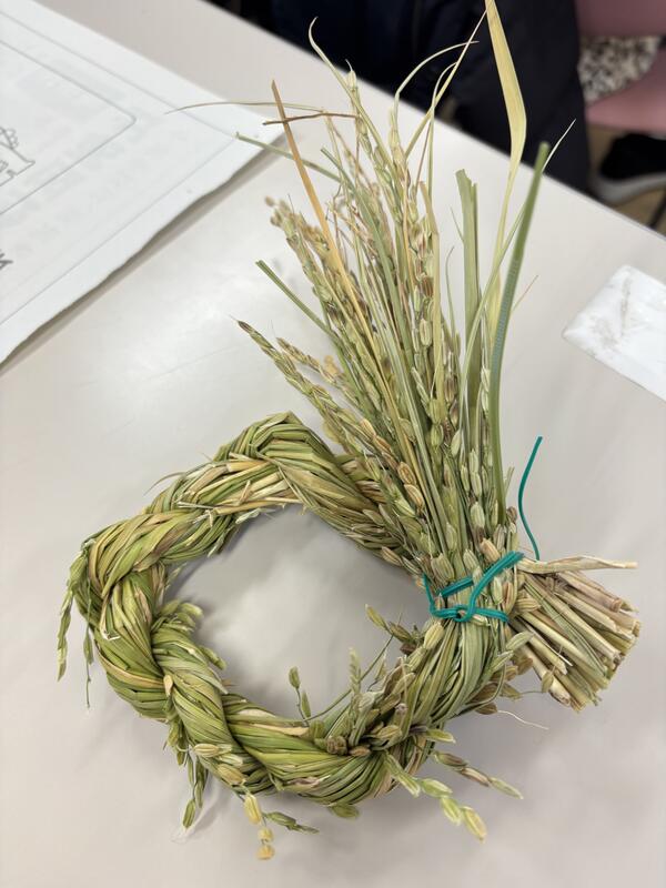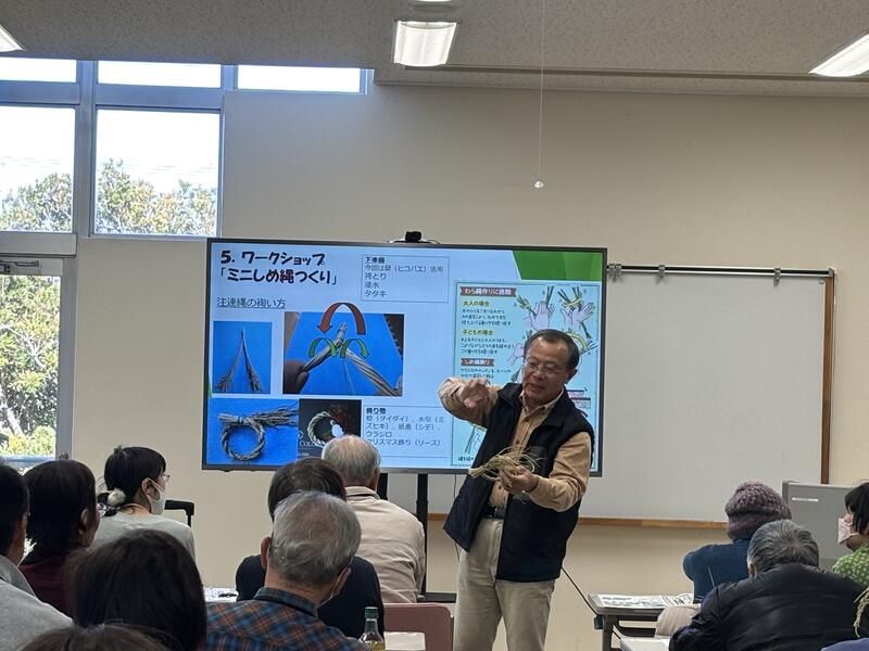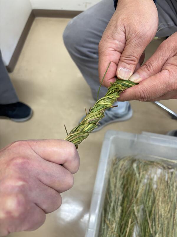 後半はミニしめ縄つくりのワークショップ。
