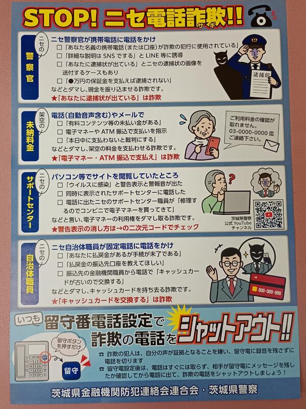 また最近は「ニセ警察官」を名乗るオレオレ詐欺による被害が増加。