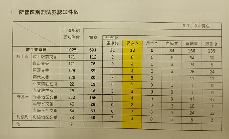 住宅侵入窃盗、自転車盗難、万引きの増加が課題
