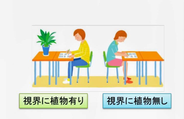 視界に植物がある場合は、無い場合に比べてストレス負荷後のストレスホルモンの増加があまり見られなかった
